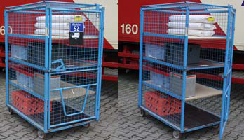 Die Rollbehälter eignen sich besonders gut für den Transport von Lagerware und größere, sperrige Güter. Die Behälter sind ebenfalls bei Bedarf abschließbar.